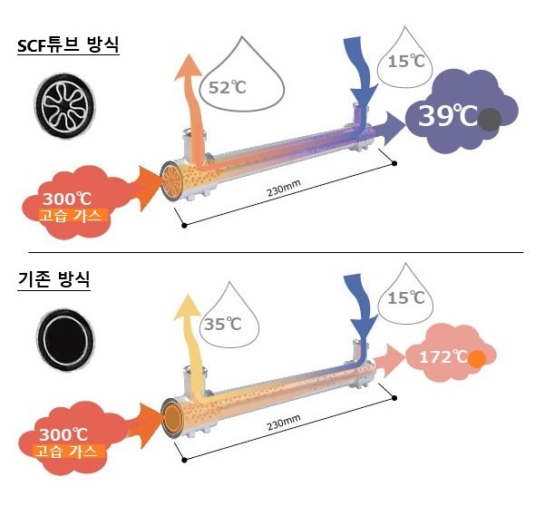 하지 않으며(내열응력이 높은 구조) SC 튜브를 핀으로 사용함으로써, 튜브 내부에 고온 가스 유로가 형성될 수 있다. |