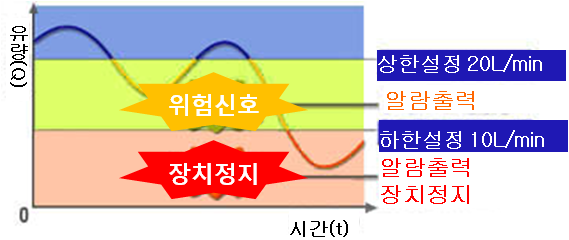 유량을 표시하는 것 뿐만아니라 유량범위제어로 이용이 가능합니다.